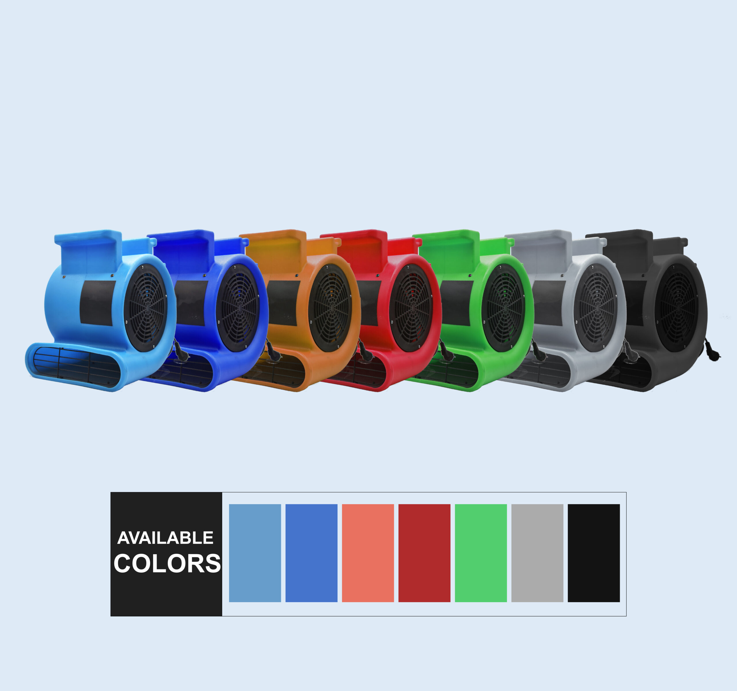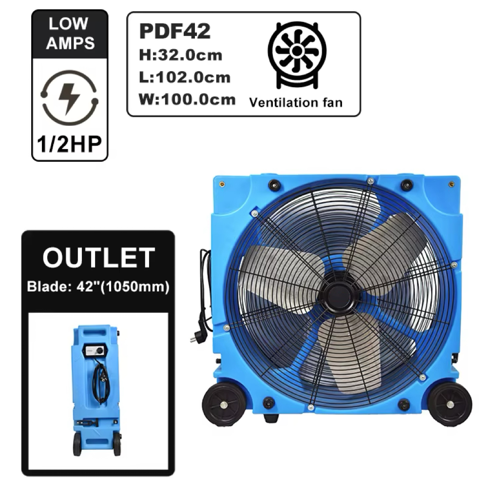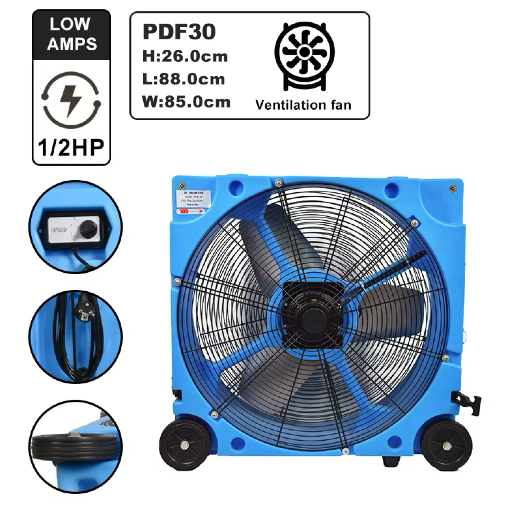— Our 24″, 30″, 36″, 42″ drum fans are made of roto molding plastic construction , permits higher levels of endurance during extreme temperatures and rough impact over traditional thin metal drum fans. The plastic fan boasts outstanding durability built to withstand the dust and debrs of busy workshops and garages.