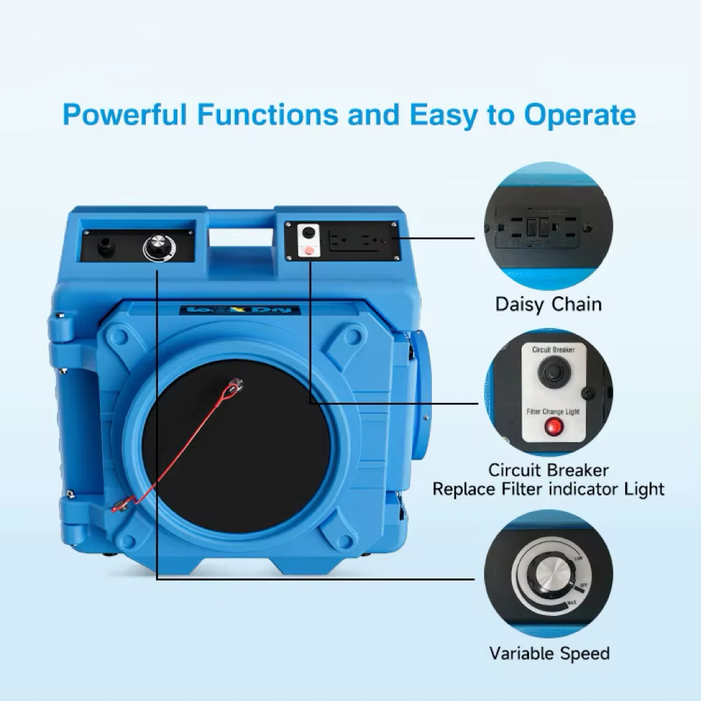 AS110003 空气净化器保持高风量,低电流消耗,重量轻,配有简易提手、GFCI 菊链和功能性装置。
