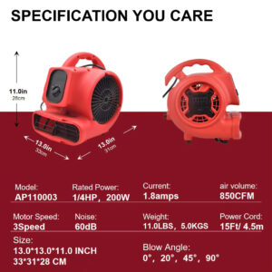 工业商用落地扇干燥机鼓风机低矮型空气搬运机地毯干燥机电动地板干燥清洁